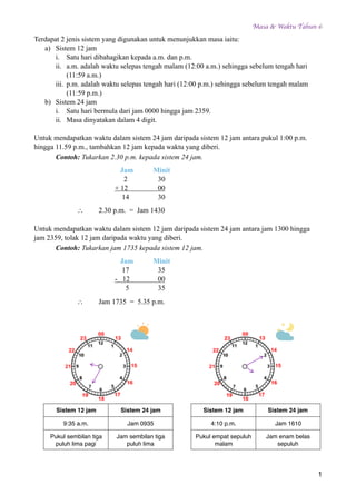 Modul KSSR Matematik Tahun 6 by Safiah Sulaiman 21487 views. Kertas 2 masa dan waktu tahun 6 via. Adalah waktu selepas tengah malam 1200 am sehingga sebelum tengah hari 1159 am iii.